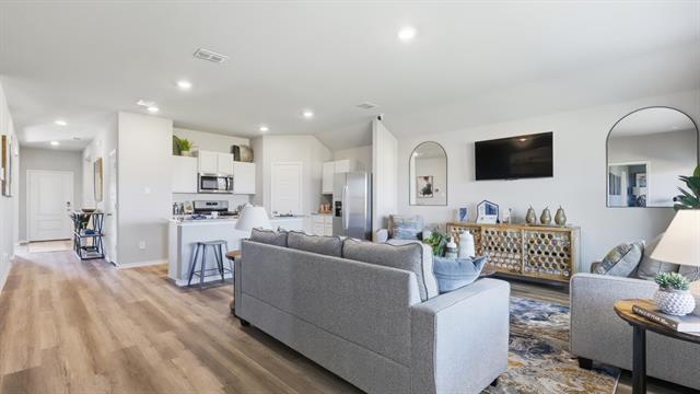 Brand-new D.R. Horton home in the Bella Vista community located in Granbury and Granbury ISD! The single-story Justin Floorplan, Elevation C, with an estimated Spring completion, offers 4 bedrooms, 2 bathrooms, and a 2-car garage with a spacious open-concept layout designed for modern living. The family room, dining area, and contemporary kitchen flow together seamlessly, creating a welcoming central gathering space perfect for everyday life and entertaining. The chef-inspired kitchen features quartz countertops, 36” upper cabinets with hardware, stainless steel appliances, an electric range, stainless steel sink, center island, and a walk-in pantry for convenient storage. The private primary suite includes an en-suite bath with dual quartz vanities, a 5-foot oversized shower, and a walk-in closet located directly off the bathroom. Three secondary bedrooms and a full bathroom with a quartz vanity top provide flexible space for family, guests, or a home office. Luxury vinyl plank flooring is installed throughout all main living areas and wet zones for enhanced durability and easy maintenance. Built with energy-efficient construction and equipped with America’s Smart Home Technology, this home also includes a tank water heater for added convenience. Exterior features include a landscape package, full sprinkler system with rain sensor, and privacy fencing . Bella Vista in Granbury is more than a place to live, it’s a place to call home.