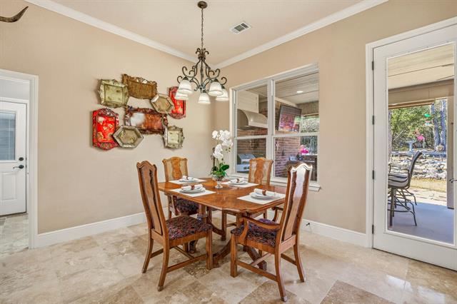 Experience elevated country living at 1218 Meander Road in Granbury. Set on approximately 5.04 scenic acres in Bentwater, this beautifully crafted two-story estate offers over 3,300 square feet of thoughtfully designed living space, blending timeless architecture with the serenity of wide-open Texas skies. Built in 2009, the home showcases expansive living areas, a stately fireplace, and a layout designed for both refined entertaining and everyday comfort. Natural light pours through generous windows, framing picturesque views of the surrounding acreage and private pond with a pier and fountain — a rare feature that enhances both beauty and tranquility. The outdoor living experience is exceptional. The backyard is enhanced by stunning professional landscaping and a tranquil water feature, creating a private retreat just steps from the home. The expansive back porch is designed for entertaining, complete with a fully equipped outdoor kitchen — ideal for hosting gatherings or enjoying quiet evenings under the Texas sky. Car enthusiasts and hobbyists alike will appreciate the total of four garage spaces, including an attached two-car garage and a separate detached two-car garage, offering flexibility for vehicles, storage, or workshop space. With privacy, acreage, refined finishes, and resort-style outdoor amenities, this property delivers a rare opportunity to own a truly distinguished Granbury estate.