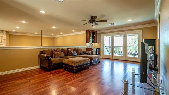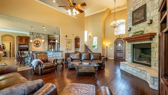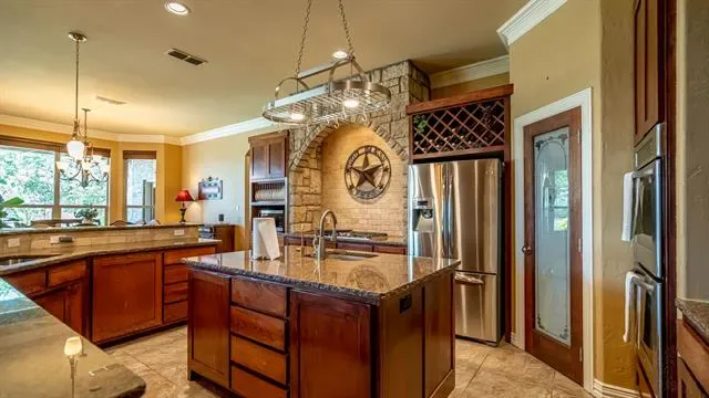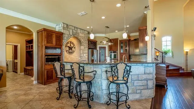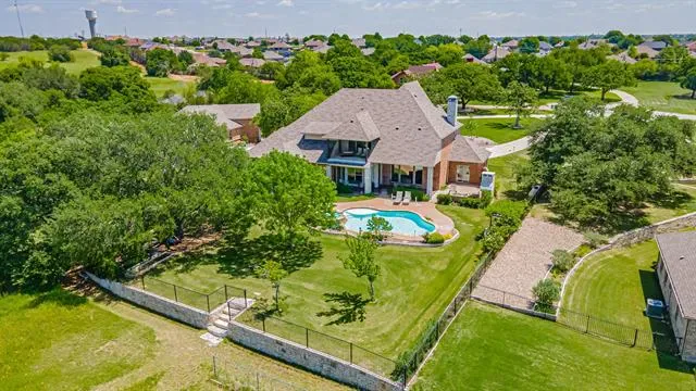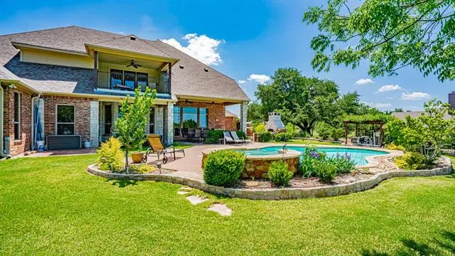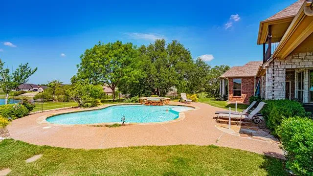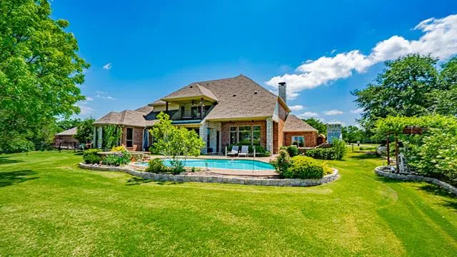 Set apart by thoughtful design and elevated finishes, this stunning custom home offers a seamless blend of comfort, space and standout features. Inside, you’ll find two spacious living areas perfect for both everyday living and entertaining. The layout is ideal, with a private upstairs retreat featuring three bedrooms, an additional living space and kitchenette as well as a balcony overlooking the pool and pond. The primary suite is a true sanctuary, complete with a beautiful solarium sitting room that invites natural light and provides the perfect spot for morning coffee or winding down in the evening. Step outside and experience resort-style living at its finest. A custom pool and hot tub anchors the outdoor space, complemented by a cozy outdoor fireplace- ideal for year-round enjoyment and hosting unforgettable evenings under the stars. The property also boasts peaceful views of a pond, adding to the serene, private setting. For those needing extra space for hobbies or travel, the separate 45′ RV garage with an attached workshop is a rare and valuable feature, and a heated and cooled dog room with access to the yard. This home is the perfect combination of luxury, practicality and lifestyle designed for those who want it all. Well strictly for irrigation. Comes with boat slip E23