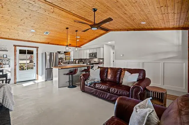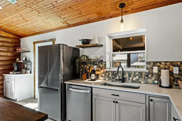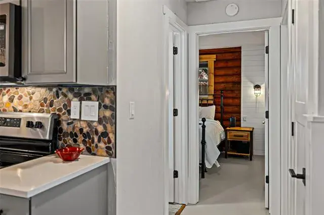 **Lake season is here…do not pass on this opportunity!** Step inside to a world away from the hustle and bustle of city life to a modern log cabin on Lake Granbury! This log cabin has been fully remodeled with no detail left untouched featuring 2 bedrooms and 2 full bathrooms with an open kitchen living room. Gutted down to the studs upgrades include all new plumbing and electrical systems with new log siding and pillars. Keep utility bills low with all new spray foam insulations and new windows. Former utility room was transformed into a new master bathroom featuring a rainfall showerhead, nightlight Bluetooth fans, heated lighted mirrors, and an all-in-one washer dryer combo. Hallway bathroom has same rainfall showerhead, nightlight Bluetooth fans, and heated lighted mirrors. The kitchen was completely remodeled with new appliances, river rock backsplash, and custom kitchen island with barstools. Living room features gorgeous brick fireplace ready for the cool nights of a wood-burning fire. Additional upgrades include fresh paint, new interior and exterior doors, canned lighting, new attic access with metal ladder, wood fence replaced, updated electrical panel, HVAC serviced with ducts cleaned, and tankless on demand hot water heater. Covered back porch looks down to the canal with a perfect spot for a firepit. Property would be ideal for a weekend getaway or a short-term rental ready for visitors! The details are incredible and thoughtful from the moment you walk through the front door. Come see the oasis you have been searching for!