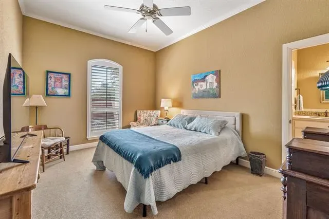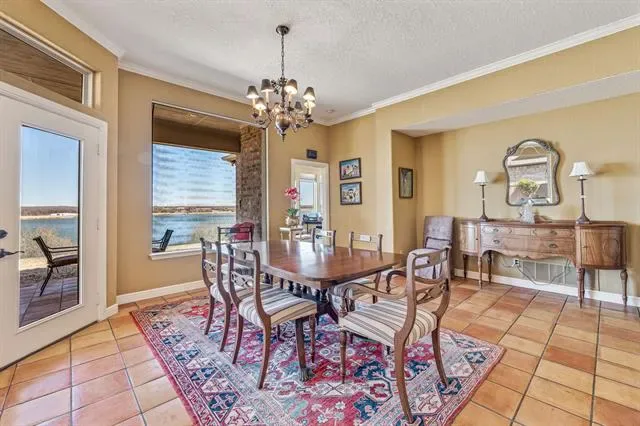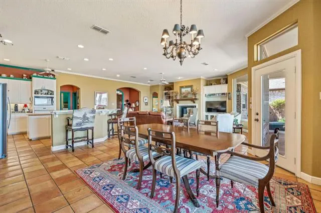 The panoramic views of Lake Granbury from this elevated home are nothing short of breathtaking—sunrise, sunset, and every moment in between. Guests are welcomed through a charming front courtyard, an ideal spot for seasonal blooms, into an interior that is exceptionally clean, beautifully maintained, and thoughtfully designed. The open-concept layout maximizes the scenery with a nearly uninterrupted wall of windows spanning the back of the home. Inside, warm Southwestern-inspired accents add personality, while the spacious living room invites relaxation with its gas log fireplace and custom built-ins.