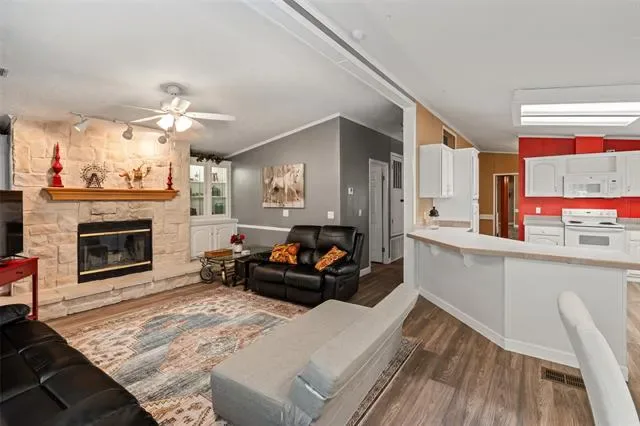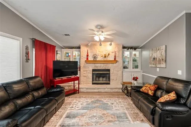 Enjoy the best of lakeside living and small-town charm in this beautifully maintained 1,906 square foot double wide mobile home on Lake Granbury. Featuring 3 bedrooms, 2 full baths, formal and informal living rooms, a cozy fireplace, and a spacious layout, this home offers comfort and flexibility, perfect as a full-time residence or a relaxing vacation home.