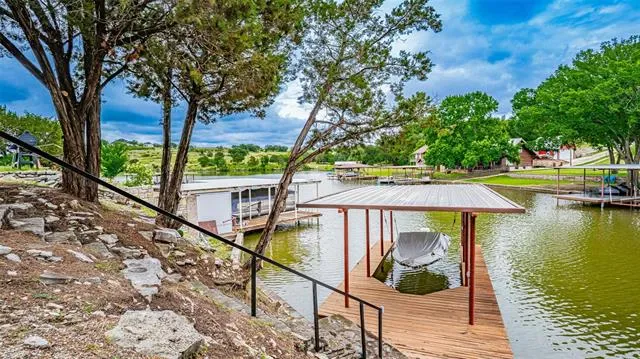 New listing on Great Lake Frontage! Fantastic view of large cove, covered boat dock with lift, retaining wall, very private location. Great for weekend entertaining or retirement place. 3 Bedroom, 2 bath, 2 spacious living areas, 2 car carport. Large porch with view of the lake.