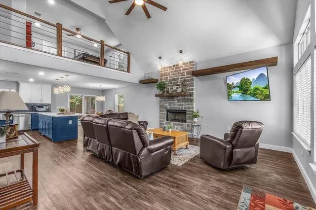 Step inside to an inviting open floor plan featuring luxury vinyl plank flooring, quartz countertops, and stainless steel appliances that create a modern yet warm atmosphere. The spacious layout includes two living areas, with a loft upstairs—perfect as a second living room, office, or play area.