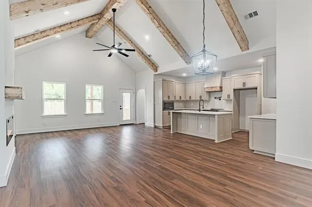 Built-in Wine Cooler, Cathedral Ceiling(s), Chandelier, Decorative Lighting, Double Vanity, Dry Bar, Granite Counters, Kitchen Island, Natural Woodwork, Open Floorplan, Pantry, Vaulted Ceiling(s), Walk- In Closet(s)
