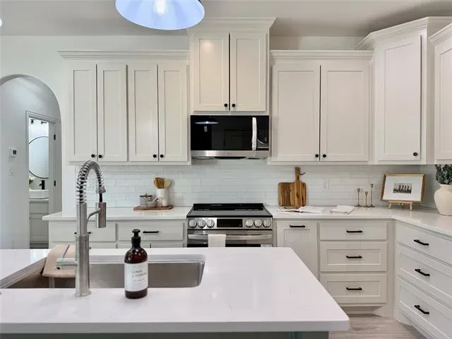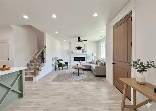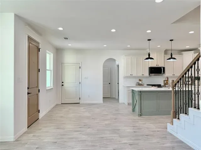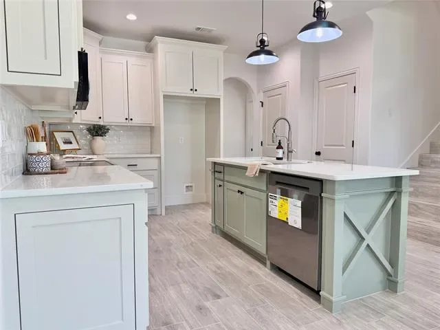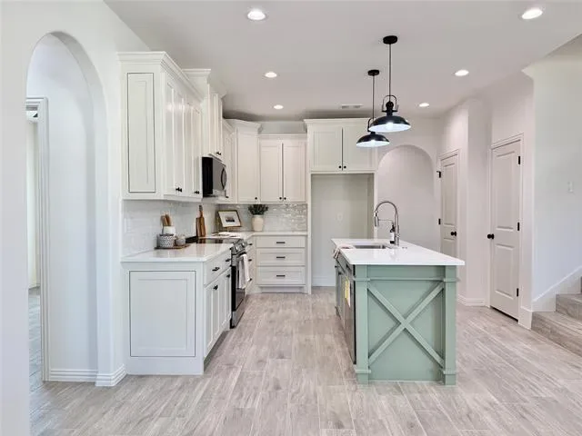 Step inside to an expansive open floor plan bathed in natural light, designed for effortless entertaining and everyday comfort. The heart of the home is a gourmet kitchen featuring custom cabinets throughout in bright, airy tones that create a fresh and inviting atmosphere. The kitchen island steals the show with a playful sage green pop of color, perfectly complementing the high-end finishes and providing ample space for culinary creations and casual gatherings.