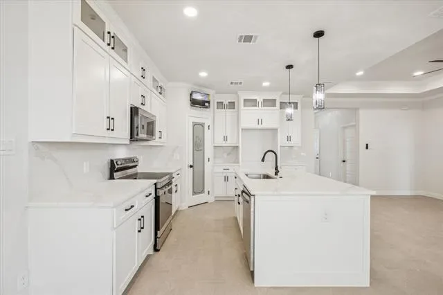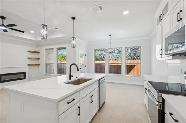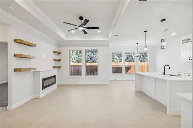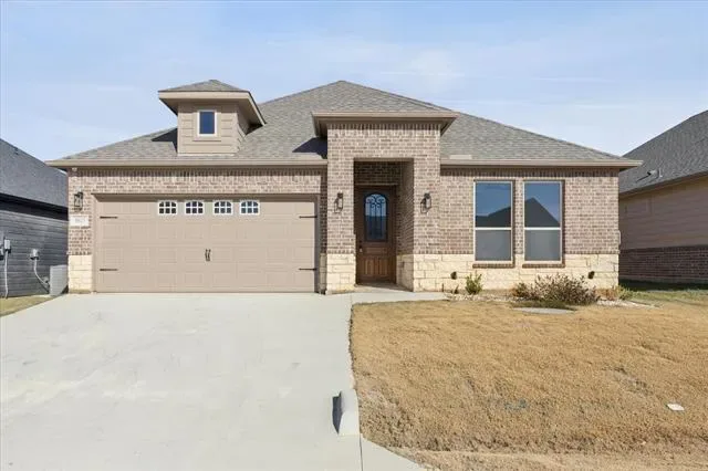 Eligible for 0% DOWN CONVENTIONAL FINANCING or a 2-1 BUYDOWN with reduced payments for the first two years through the seller’s preferred lender. Seller to contribute $5,000 TOWARD BUYER’S CLOSING COSTS. Experience exceptional modern living in this brand-new 2025 open-concept home, thoughtfully designed and loaded with premium upgrades. Located in the highly sought-after, gated Canyon Creek community—just minutes from Lake Granbury and the Brazos River—this residence is ideal for both everyday living and entertaining. The home features impressive 9-foot cathedral ceilings and an expansive living area highlighted by a striking electric fireplace, elegant crown molding, seamlessly flowing into the kitchen and dining spaces. Large windows fill the home with natural light, showcasing the ceramic flooring and a neutral color palette that complements any décor. The kitchen serves as a true centerpiece, offering custom cabinetry with integrated lighting, a walk-in pantry, and an oversized quartz island with seating for four or more—perfect for casual dining and gatherings. The split floor plan provides optimal privacy, with two bedrooms located on one side of the home and a spacious primary suite on the other. The primary retreat includes an en-suite bathroom with dual vanities, an oversized walk-in shower, and a generous walk-in closet. Additional upgrades include a security system, gutters, sprinkler system, and a covered patio. Residents of Canyon Creek enjoy an array of premium amenities, including 24-hour manned gated security, two swimming pools, a clubhouse, tennis and basketball courts, playgrounds, and boat ramp-fishing dock. Whether you are seeking a peaceful weekend getaway or a full-time residence, this home presents an exceptional opportunity.