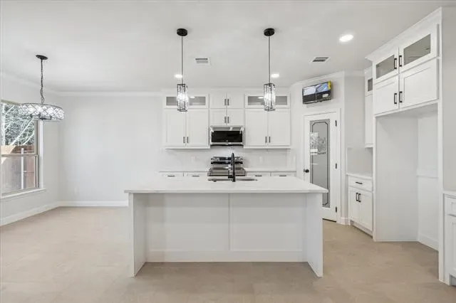 Eligible for 0% DOWN CONVENTIONAL FINANCING or a 2-1 BUYDOWN with reduced payments for the first two years through the seller’s preferred lender. Experience exceptional modern living in this brand-new 2025 open-concept home, thoughtfully designed and loaded with premium upgrades. Located in the highly sought-after, gated Canyon Creek community—just minutes from Lake Granbury and the Brazos River—this residence is ideal for both everyday living and entertaining. The home features impressive 9-foot cathedral ceilings and an expansive living area highlighted by a striking electric fireplace, elegant crown molding, seamlessly flowing into the kitchen and dining spaces. Large windows fill the home with natural light, showcasing the ceramic flooring and a neutral color palette that complements any décor. The kitchen serves as a true centerpiece, offering custom cabinetry with integrated lighting, a walk-in pantry, and an oversized quartz island with seating for four or more—perfect for casual dining and gatherings. The split floor plan provides optimal privacy, with two bedrooms located on one side of the home and a spacious primary suite on the other. The primary retreat includes an en-suite bathroom with dual vanities, an oversized walk-in shower, and a generous walk-in closet. Additional upgrades include a security system, gutters, sprinkler system, and a covered patio. Residents of Canyon Creek enjoy an array of premium amenities, including 24-hour manned gated security, two swimming pools, a clubhouse, tennis and basketball courts, playgrounds, and boat ramp-fishing dock. Whether you are seeking a peaceful weekend getaway or a full-time residence, this home presents an exceptional opportunity.
