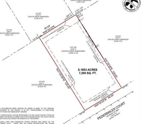 - Located in the Canyon Creek subdivision, 2304 Pedernales Court Granbury TX is a Land for sale in Granbury, TX, 76048. It is listed for $35,000 and features 0 acres. To schedule a showing of MLS#21161091 at 2304 Pedernales Court in Granbury, TX, contact your Spencer TX Real Estate, LLC agent at (817) 937-8532.