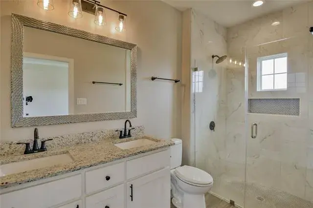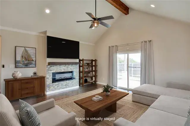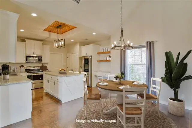 Positioned on a peaceful street, this thoughtfully designed home blends functionality with style. The open-concept layout is highlighted by custom cabinetry, gleaming granite countertops, stainless steel appliances, a spacious island, and a striking modern electric fireplace. A vaulted ceiling with an exposed beam spans the living area, adding warmth and architectural interest. The split-bedroom floor plan offers privacy and comfort, with a serene primary suite featuring dual sinks, a large walk-in shower, and custom cabinetry. Energy efficiency is top-of-mind with spray foam insulation and a radiant barrier, helping to keep utility costs low year-round. This is more than a house—it’s a place to truly feel at home.