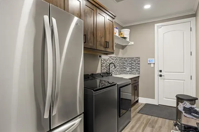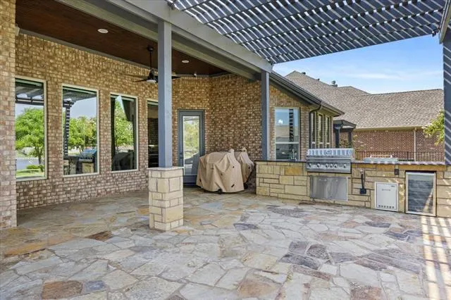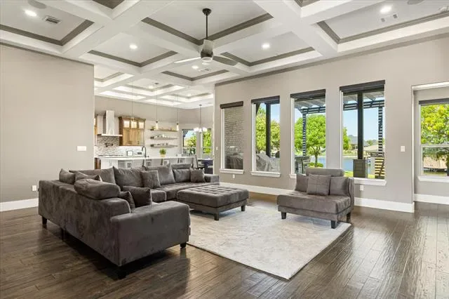 Additional highlights include an insulated garage with epoxy floors, mini-split HVAC, ceiling speakers, EV RV plug, and a large tornado shelter. Every detail has been updated—move-in ready, with modern elegance and resort-style lakefront living.