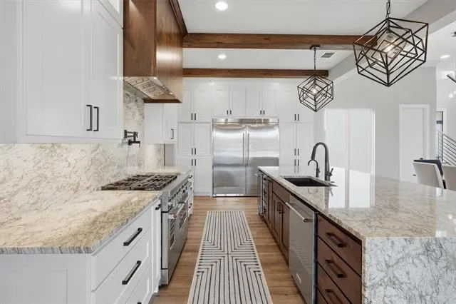 Built-in Wine Cooler, Chandelier, Decorative Lighting, Granite Counters, Kitchen Island, Open Floorplan, Walk- In Closet(s)