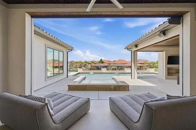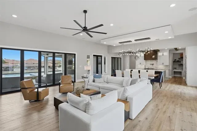 The outdoor living experience is truly a standout. Enjoy a resort-style pool and hot tub, complemented by a large covered patio and fully equipped outdoor kitchen—perfect for hosting gatherings or relaxing while taking in tranquil canal views.
