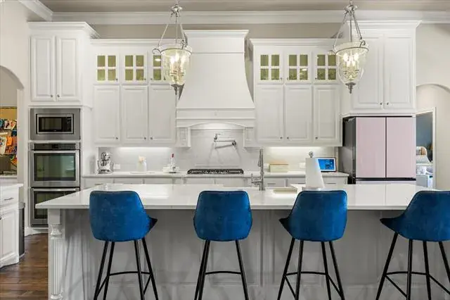 Step inside and be greeted by an impressive open floor plan, where soaring ceilings and abundant natural light create an inviting atmosphere. The gourmet kitchen, featuring high-end appliances and custom cabinetry, seamlessly flows into the living and dining areas, making it perfect for both everyday living and entertaining.