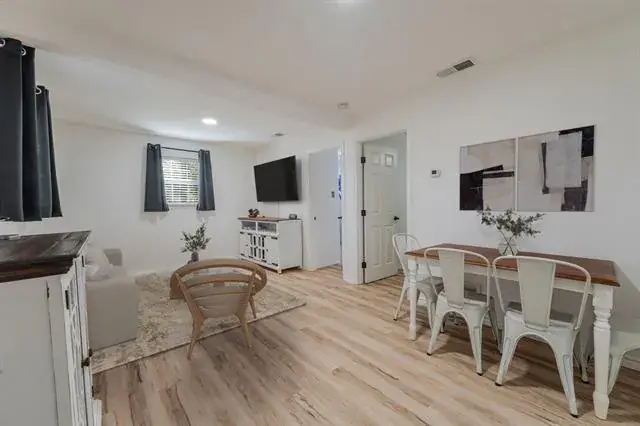 This cozy cottage blends farmhouse warmth with fresh modern updates. Inside, new appliances, sleek countertops, and luxury vinyl flooring pair perfectly with crisp, freshly painted walls for an easy, move-in-ready feel. Relax on the inviting front porch deck—ideal for slow mornings, sunset chats, or hosting friends. Nestled in a peaceful, tree-lined setting with a detached garage, this home delivers the perfect balance of rustic charm and modern convenience.