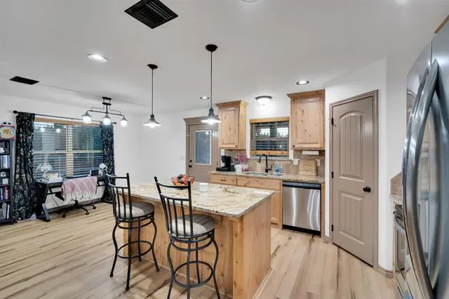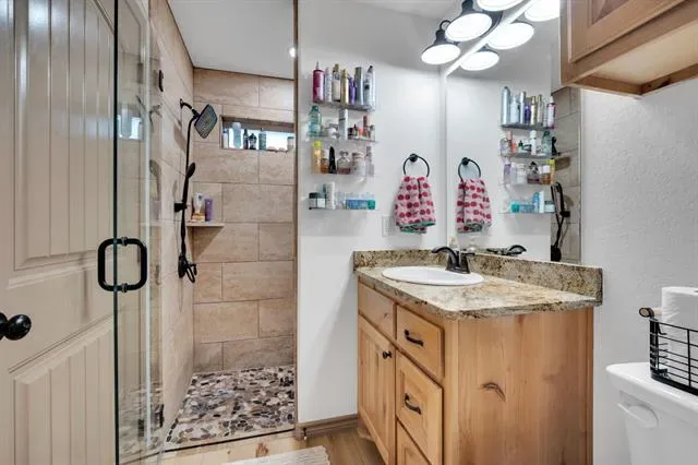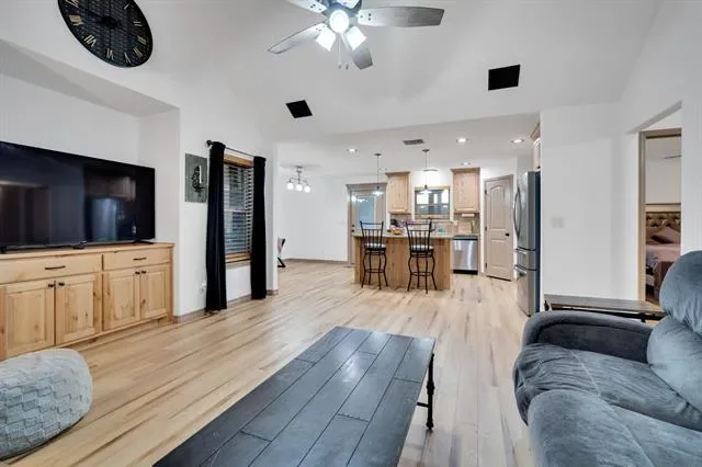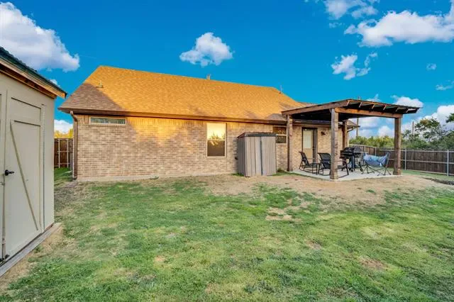 The home is built on lot 169 and 170. Lot 171 is connected to this home providing you with no next-door neighbors. Enjoy exclusive, private access to Granbury lake with a boat ramp just for residents—perfect for fishing, or relaxing by the water. The private community offers a community pool along with a park. This 2-bedroom, 2-bathroom home comes with modern finishes, offering a turn-key living experience. From the moment you step inside, you''ll be greeted by the open-concept design. The home features stylish flooring, appliances, and sleek fixtures— the attic has high density spray foam keeping the home cool in the summer and warm in the winter. The spacious living area flows seamlessly into the dining and kitchen spaces. The kitchen is a highlight, complete with granite countertops, stainless steel appliances, with soft close cabinets. The large windows throughout the home let in abundant of natural light. The primary bedroom featuring ample closet space and a private en-suite bathroom with modern finishes. The second bedroom is perfect for guests, a home office, or family, with easy access to the second full bathroom, which mirrors the home''s stylish updates. One of the standout features of this home is the 12 foot awning, offering generous space to park your boat, RV, or any other recreational vehicles. Another is the AC shed in the backyard making it perfect for a workshop or storage. It''s a fantastic addition, giving you even more flexibility with the property. Much room to make the outdoor space your own. Whether you want a garden, extra storage, pool or an outdoor entertainment area, the possibilities are endless. Just 4 minutes from Stumpy’s Lakeside Grill Marina, shopping, and dining options, this home offers the best of both worlds, modern, private living with easy access to everything you need.