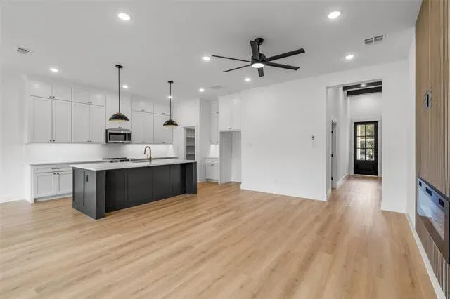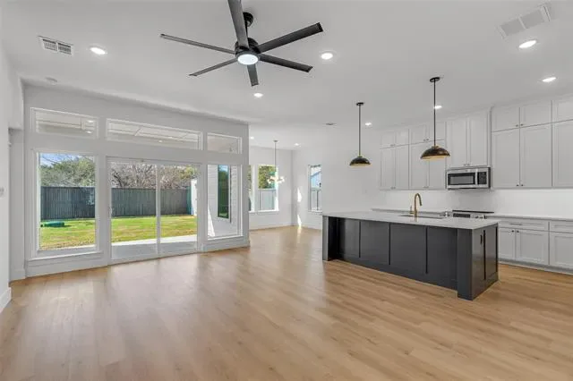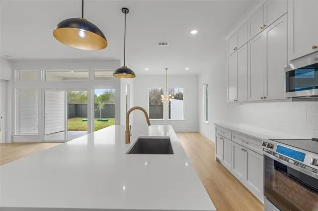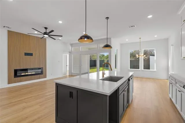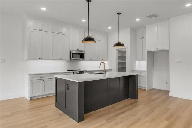 Decorative Lighting, Granite Counters, Kitchen Island, Pantry
