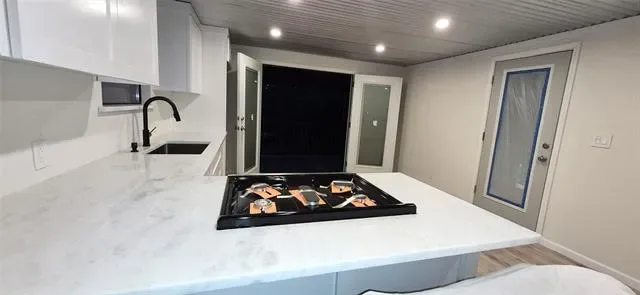 Wow and Wow!! Check out this fully remodeled fully foamed (including floors) home on gorgeous Lake Granbury, Torn down to studs, New everything, walls, roof, sheetrock, showers, tub, paint, ceilings, trim work, doors literally everything has been replaced! Located in the FAMOUS Bell Tower Cove, This property is the one you have been waiting for. Just 1 min from main body by boat or water craft, This is your relaxation retreat. Based on previous owner this MH has never been moved and the front porch was added according to TDHCA standards including extra top of the line foundation ventilation. With tons of lighting, and personal touches This house boast so much, and will not disappoint! HGTV style remodel with 3 full bathrooms and 4 bedrooms. Gorgeous lake front lot, Huge new covered deck-front porch, high end Pergo Flooring, New appliances, including stainless steel refrigerator, French doors open to you beautiful view, trees, yes this lot has gorgeous trees. Tucked away in the wonderful Comanche Cove Neighborhood. Priced to sell, this wonderful property is you dream home, or home away from home, vacation spot. 4th bedroom, is a private apt with full bathroom, kitchenette, and room for bed and dresser. VRBO’s are allowed in this neighborhood, and this is excellent opportunity to snag another Advantage Construction high end HGTV style remodel
