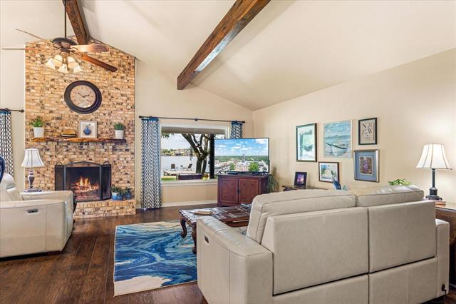 A rare find, walk-out water, on main body Lake Granbury, with deep water, a private swimming cove, spectacular views, awesome sunsets and a totally renovated lake house. This one has it all and is perfect for a vacation rental property. There is 79 feet of waterfront property to enjoy with a durable, long lasting, TREX fishing dock and a private community boat ramp. The newly renovated house has been expanded to 3581 square feet with 4 bedrooms (2 are master bedrooms and both located on the first floor), 3.5 baths plus a dedicated office. The kitchen, dining, guest lake suite and living areas all offer incredible views that are truly breathtaking! The versatile upstairs bedrooms are currently being used as a craft room and a man cave, but there are so many possibilities with the upstairs space and could be easily adapted to suit various needs. There is a model train room that could serve as an additional office or playroom. Outdoor living is gorgeous with mature pecan and oak trees, horseshoe pit and ample opportunities for fishing and swimming. The backyard is the perfect place to enjoy views of the lake, drink your coffee, entertain guests or watch the sun set with a glass of wine. This property could be your dream home on the lake, a weekend getaway or even a great short term rental investment. The guest lake suite is handicap accessible with a large closet and awesome lake view. The home offers abundant climate controlled storage, including a walk-in attic storage and a mini-split AC unit in the garage. This property is nestled at the end of a quiet cul-de-sac. This is a truly exceptional property! Come take a look and dip your toes in the lake.
