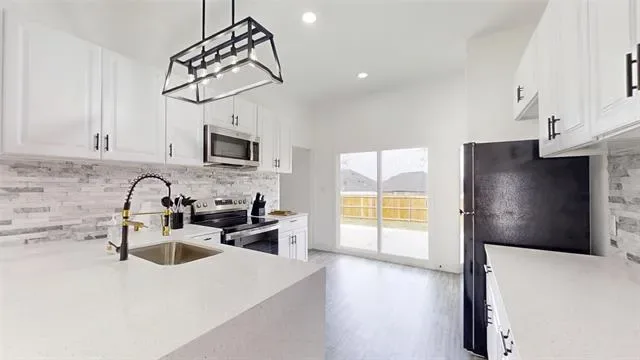 Welcome to this brand-new modern home located in Granbury, TX – The Celebration Capital of Texas! Thoughtfully designed with today’s lifestyle in mind, this home offers 3 bedrooms, 2 bathrooms, and a bright open-concept floor plan that maximizes space and comfort. The contemporary kitchen features stylish finishes, ample cabinetry, and seamless flow into the living and dining areas—perfect for both everyday living and entertaining. The private primary suite provides a relaxing retreat with a well-appointed bathroom and generous closet space. Two additional bedrooms offer flexibility for family, guests, or a home office. A fully fenced backyard provides room to play, garden, or unwind, offering privacy and peace of mind for pets and outdoor enjoyment. With modern construction, energy-efficient features, and a move-in-ready presentation, this home is an excellent opportunity to own new construction at an affordable price. Enjoy the charm of Granbury with convenient access to the lake, parks, and local amenities.