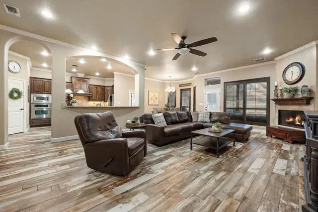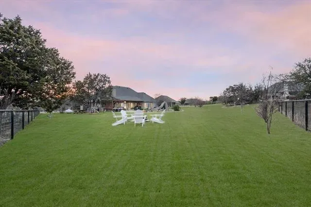 JUST REDUCED on .89 acres in the highly sought-after upscale gated community of De Cordova Ranch on Lake Granbury, TX, in Hood County. Very well-maintained! LET’S GO…all brick and stone exterior, 2,725 sq ft, four bedrooms, two and a half baths, both breakfast dining and a formal dining area, no carpet throughout, upgraded granite countertops, custom cabinetry, custom plantation shutters, large kitchen with an island that will accommodate the whole family cooking together. Large living room with a gas log fireplace. Coffered ceilings in the primary bedroom. Nice-sized laundry room conveniently located just off the primary bathroom, which has a jetted tub, separate shower, separate vanities, and a large walk-in closet. Ample storage throughout the home. Luxurious gunite swimming pool with a Dolphin Robotic Pool Cleaner, diving board, water slide, and a LARGE SPA big enough to accommodate 10 plus people, to be enjoyed all year round with its ability to independently heat. MULTIPLE outdoor seating areas for your pool furniture, play set, and a covered living area to watch your favorite sports and movies. Stainless steel Zephyr buffet cabinet system with a mini refrigerator to keep your favorite beverages and snacks easily accessible and cold! Exterior is already plumbed for gas. Nicely manicured and landscaped with black pipe fencing, irrigation in the front, sides, and backyard. Side-facing 3-car garage with ample parking. No big steps or stairs on the property' all single-level except inside the pool and spa, of course 🙂 Located just minutes from Downtown Granbury, which offers boutique shopping, unique restaurants, and live music entertainment—very near fishing, boating, swimming, and golfing. NO THROUGH TRAFFIC makes this property peaceful. Do not use GPS. You must access this fine gated community off of Davis Rd. The address to the main entrance is 3602 De Cordova Ranch Rd, Granbury. New roof as of last year. One new HVAC.
