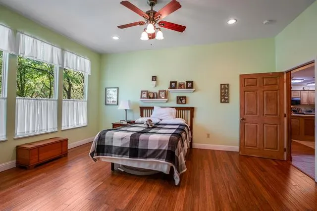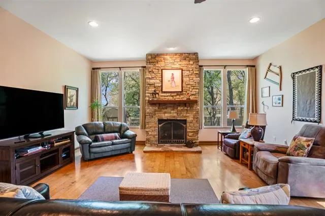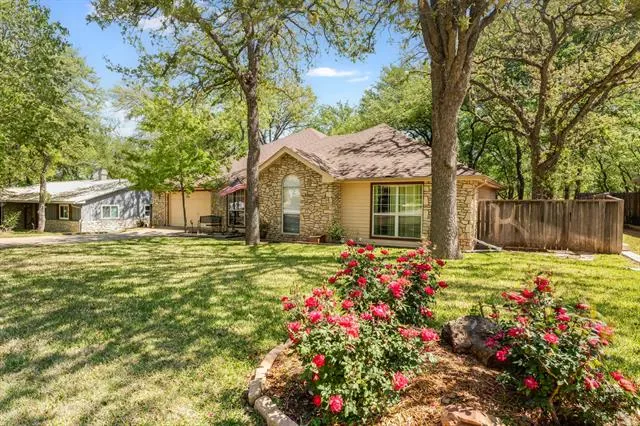 Nestled among majestic, mature trees, your private retreat awaits in the guarded, gated community of DeCordova Bend Estates. Step inside this 4-bedroom, 3-bath home to discover a spacious, light-filled floor plan defined by tall ceilings and a stunning stone fireplace. The heart of the home is the expansive living area, which flows seamlessly into a dining space and a well-appointed kitchen offering ample cabinetry. Designed for ultimate flexibility, the layout features two primary suites, creating a perfect haven for guests or multi-generational living. A wall of windows frames picturesque views and draws you outside to the incredible park-like backyard. Unwind on the open patio, wander along stone pathways through manicured gardens, or enjoy the vast, shaded lawn. This oversized, fully-fenced yard is a rare find and includes a versatile storage building with electricity—ideal for a workshop or hobby space. Embrace a resort lifestyle with exclusive access to all DCBE amenities: championship golf, tennis, pickleball, a community pool, clubhouse, and private lake access. Offering a unique blend of serene living and vibrant recreation just 45 minutes from downtown Fort Worth, this isn''t just a home—it''s a destination. Life happens here