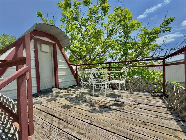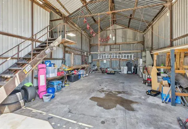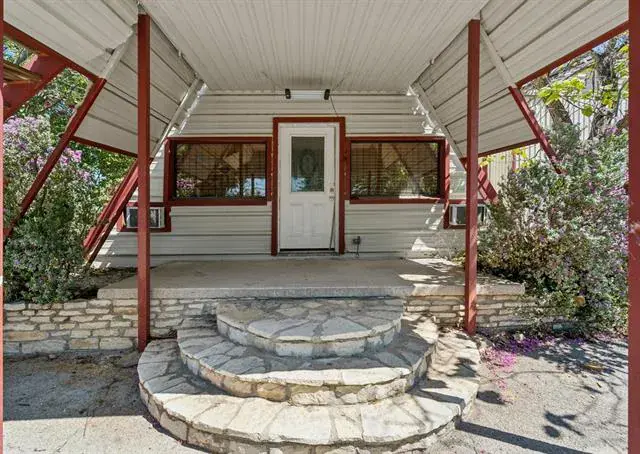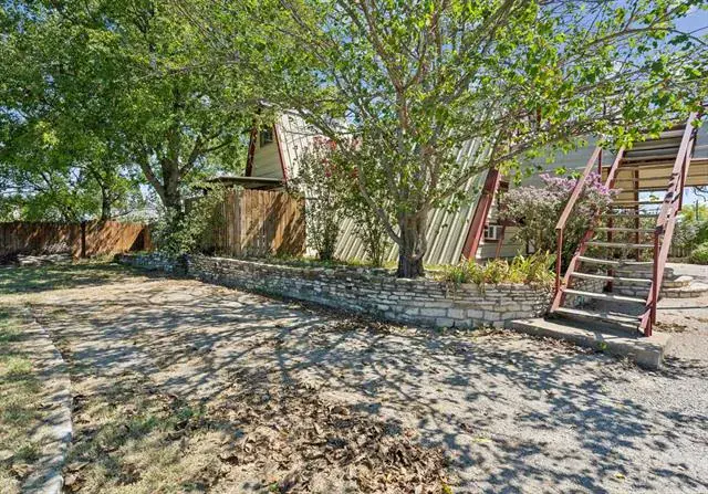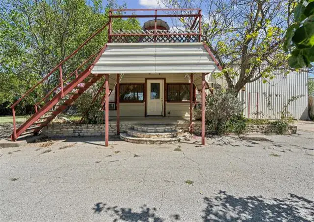 Versatile property in a prime location just behind the businesses on Highway 377! Zoned commercial but currently grandfathered in as residential, this property offers the unique flexibility to remain a residence or be converted to commercial use. Situated on nearly a third of an acre, this unique A-frame structure includes a kitchenette and is accompanied by a massive 20×33 shop—perfect for a variety of uses. The shop provides interior access to the upstairs area, which currently features two rooms with the potential to add a third by finishing with drywall and flooring. The main level includes one bedroom, a living area, and a full bathroom featuring washer and dryer hookups and a charming clawfoot bathtub. Additional highlights include two separate entrances, a fenced backyard, a septic system, and ample parking space. Ideal for anyone needing a large workshop with the option for residential comfort or business potential, all while staying close to local amenities.
