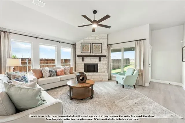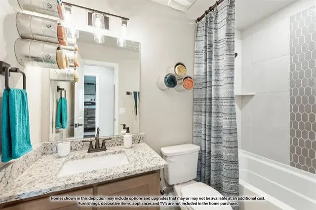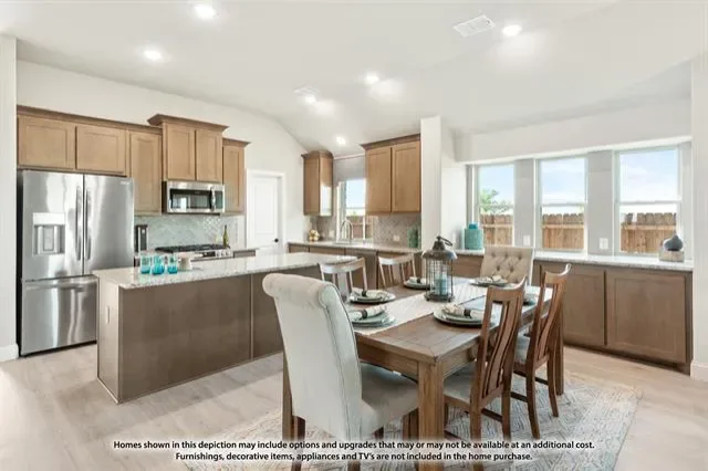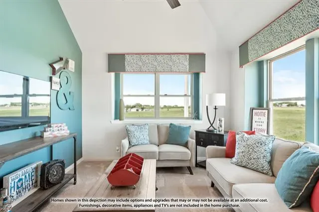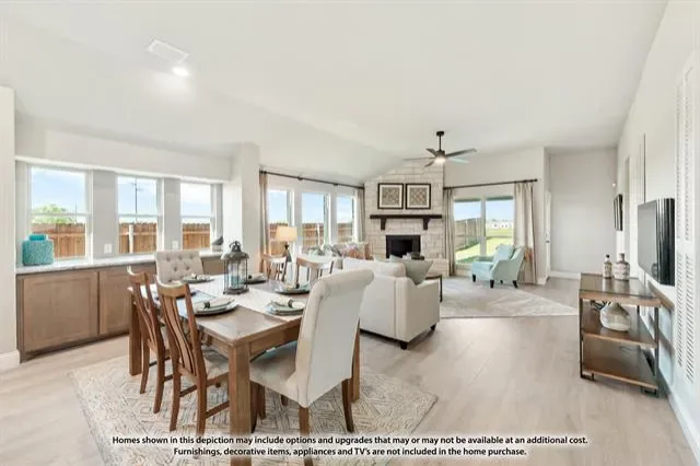 NEW! NEVER LIVED IN. Estimated Completion June 2026. Stunning Bloomfield Homes Cypress II featuring 4 bedrooms, 3 baths, a private study, and an upstairs game room. Welcomed by an 8′ front door and a charming brick-covered front porch, this home showcases a beautiful stone-and-brick exterior, full gutters, and an oversized lot with no rear neighbors for added privacy. Inside, a dedicated study with glass French doors and window seats creates an inviting workspace. Interior upgrades include 2-inch faux wood blinds throughout, maple cabinetry, upgraded bathroom tile with accent stripes, and a subway tile kitchen backsplash. The kitchen also features a convenient trash can pull-out. Enjoy outdoor living on both the covered front porch and covered back patio, offering plenty of space to relax or entertain. The large lot provides endless possibilities for creating your ideal outdoor retreat. Call or visit Bloomfield Homes at El Dorado in Granbury today to learn more!