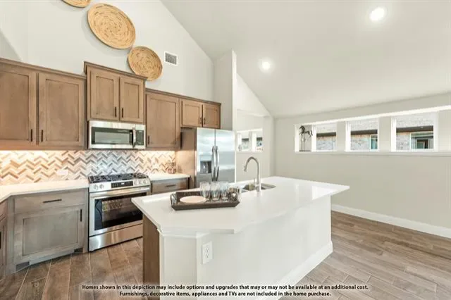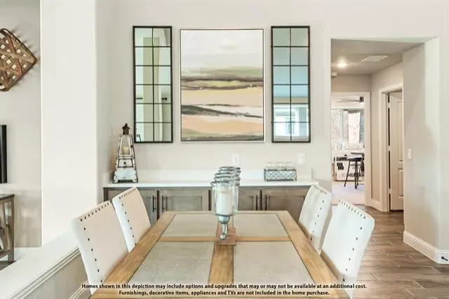 NEW! NEVER LIVED IN. Estimated Completion March 2026. The Dogwood from Bloomfield Homes is a well-designed single-story home offering 3 bedrooms, 2 baths, a 2 car garage, and a dedicated office in the El Dorado community. Outdoor living takes center stage with a front porch that’s ideal for rocking chairs or relaxed evenings, along with a spacious covered patio at the rear overlooking a backyard enclosed by a 6 ft wood privacy fence. A brick and stone exterior, full landscaping with stone edging, and an upgraded 8 ft front door complete the home’s inviting curb appeal. RevWood flooring carries through the main living areas, paired with 5 inch baseboards and numerous windows that fill the home with natural light. The family room is highlighted by a stacked stone fireplace extending floor to ceiling, creating a focal point while remaining open to the kitchen and breakfast area for easy everyday flow. The kitchen features quartz countertops, built-in cabinetry, generous counter space, and a functional layout suited for both daily use and casual entertaining. A study near the front of the home provides a quiet workspace or flexible room option. The primary suite is privately arranged at the back of the home and includes a garden tub, separate shower, a vanity with dual sinks, and a walk-in closet. 2 secondary bedrooms are positioned near a shared full bath, maintaining an efficient and comfortable layout. El Dorado places homeowners near Lake Granbury and the heart of historic Granbury, offering a close-knit community feel with access to local shops, dining, outdoor recreation, and Granbury ISD. Visit the Bloomfield Homes model to learn more and see this home in person.