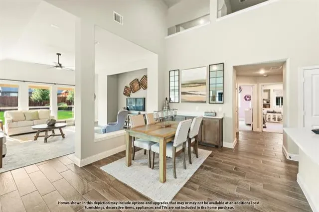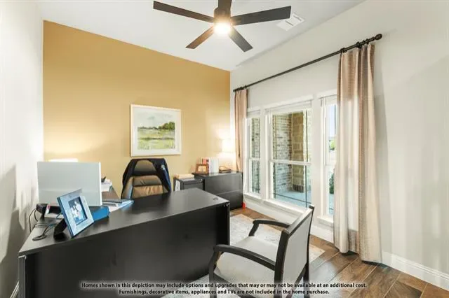 NEW! NEVER LIVED IN. Estimated Completion April 2026. The Dogwood from Bloomfield Homes is a well-designed single-story home offering 3 bedrooms, 2 baths, a 2 car garage, and a dedicated office in the El Dorado community. Outdoor living takes center stage with a front porch that’s ideal for rocking chairs or relaxed evenings, along with a spacious covered patio at the rear overlooking a backyard enclosed by a 6 ft wood privacy fence. A brick and stone exterior, full landscaping with stone edging, and an upgraded 8 ft front door complete the home’s inviting curb appeal. RevWood flooring carries through the main living areas, paired with 5 inch baseboards and numerous windows that fill the home with natural light. The family room is highlighted by a stacked stone fireplace extending floor to ceiling, creating a focal point while remaining open to the kitchen and breakfast area for easy everyday flow. The kitchen features quartz countertops, built-in cabinetry, generous counter space, and a functional layout suited for both daily use and casual entertaining. A study near the front of the home provides a quiet workspace or flexible room option. The primary suite is privately arranged at the back of the home and includes a garden tub, separate shower, a vanity with dual sinks, and a walk-in closet. 2 secondary bedrooms are positioned near a shared full bath, maintaining an efficient and comfortable layout. El Dorado places homeowners near Lake Granbury and the heart of historic Granbury, offering a close-knit community feel with access to local shops, dining, outdoor recreation, and Granbury ISD. Visit the Bloomfield Homes model to learn more and see this home in person.