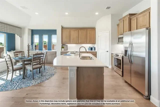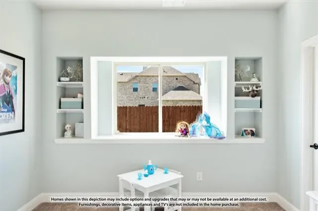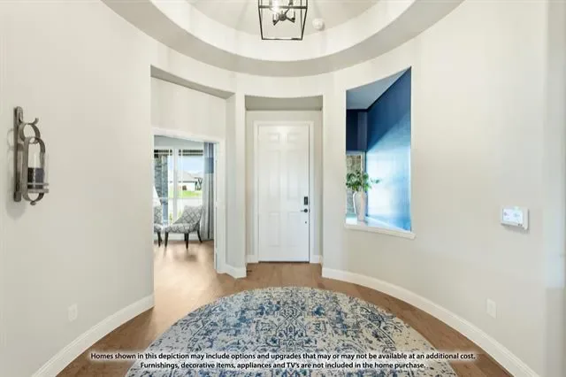NEW! NEVER LIVED IN. Ready June 2026. Bloomfield Homes presents the Carolina, a single-story with a classic rotunda foyer, 3 bedrooms, 2 baths, 2 dining rooms, and a covered patio that’s been extended! This plan starts with dual doors leading into a private front study and an open formal dining room before opening into the family room, completed by a wood-burning stone fireplace (mantel height). Durable RevWood floors are throughout common areas. An island centers the kitchen, surrounded by walls of cabinets including a built-in buffet at the breakfast nook and topped by Level 4 granite. More upgrades include a trash-can pull and a chevron backsplash. There’s a classic flow that makes it easy to imagine cinnamon-roll mornings around the table or tucked into the window seat watching the sunrise. Also off the nook, the covered rear patio makes another ideal spot to enjoy quiet moments. 2 bedrooms split a hall bath around the corner from the family room, while the Primary Suite is on the opposite end of the home creating a private retreat. There’s enough room in the primary bedroom for a seating area AND a king-sized bed; and the full bath has a garden tub, bench-seat shower, and dual sink vanity. Walk-in closet? Check. Curb appeal is another move-in ready feature with plants, trees, stone-edged flower beds, exterior lighting, whole house gutters, a bricked front porch, and timeless ACME brick exterior. Nestled against the breathtaking backdrop of Lake Granbury, this community offers a tranquil retreat with convenient access to historic amenities! Visit Bloomfield Homes at Abe’s Landing to explore what we can offer.