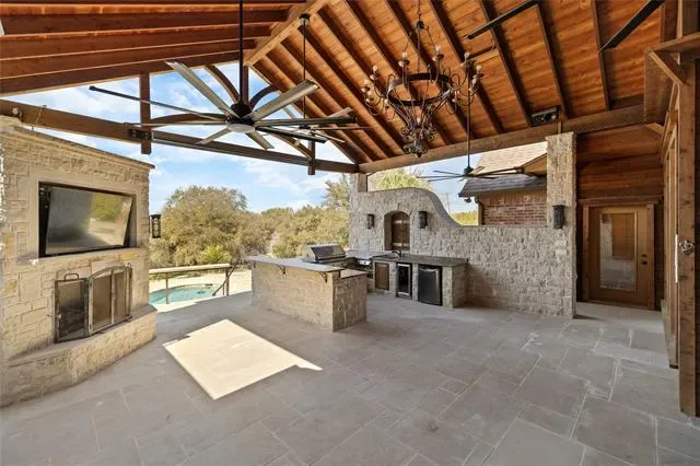 Built-in Features, Cable TV Available, Cathedral Ceiling(s), Chandelier, Decorative Lighting, Eat-in Kitchen, Flat Screen Wiring, Granite Counters, High Speed Internet Available, Kitchen Island, Natural Woodwork, Other, Paneling, Pantry, Smart Home System, Sound System Wiring, Vaulted Ceiling(s), Walk- In Closet(s), Wet Bar