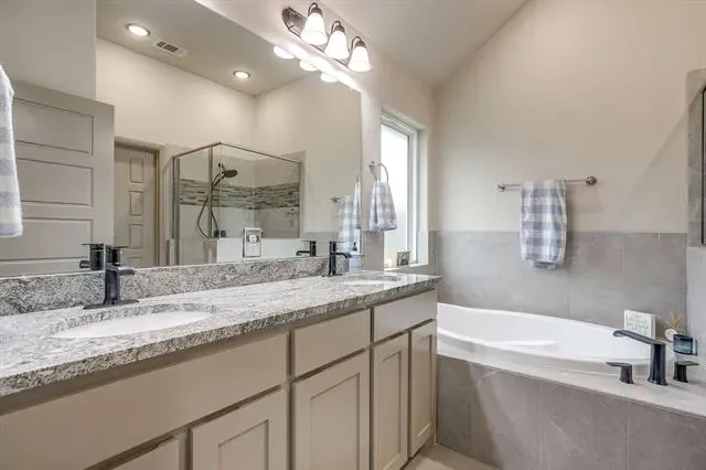 The private primary suite offers a relaxing retreat with an en suite bath featuring a soaking tub, separate shower, and a walk-in closet for added convenience and luxury. Three additional bedrooms provide flexibility for guests, a home office, or growing families.