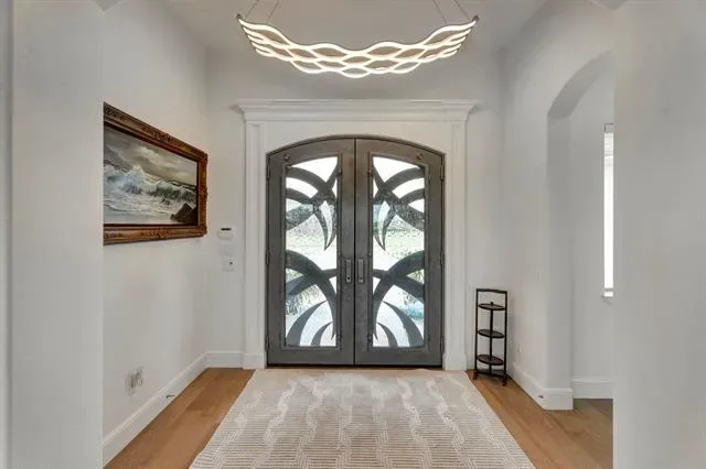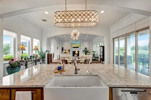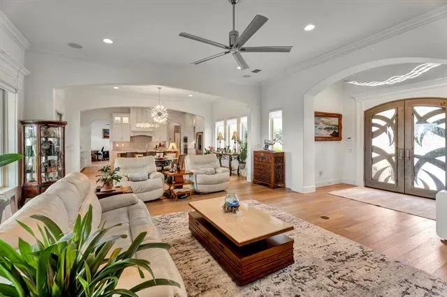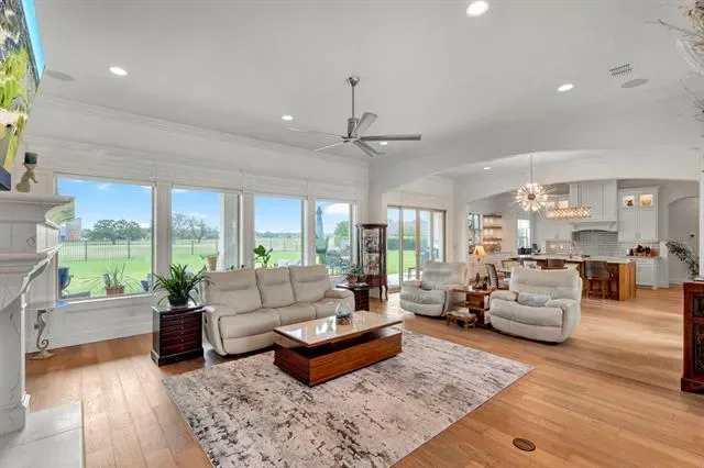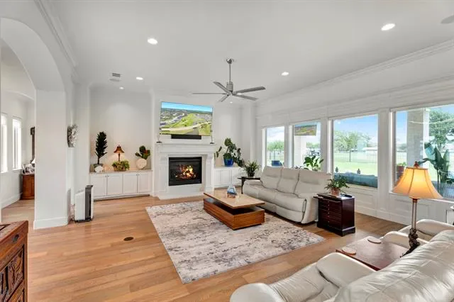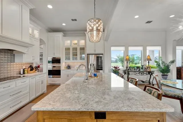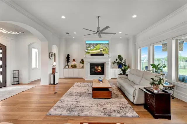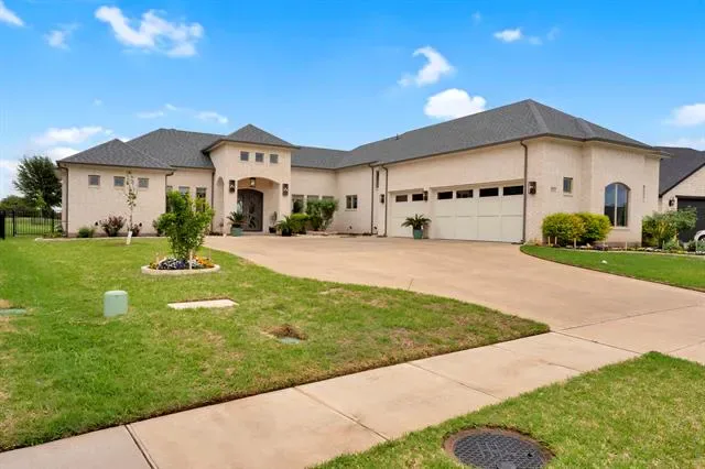 Welcome to Luxury Living in the Heart of Harbor Lakes! Nestled behind the gates of the prestigious Harbor Lakes community, this stunning golf course residence commands attention from the moment you arrive. Sweeping custom landscaping, manicured grounds, &' dramatic uplighting frame an exterior that exudes timeless elegance — crowned by a grand double iron-and-glass entry that sets the tone for what awaits inside. Step through the front doors &' into a home where every detail has been thoughtfully curated. Soaring 11-foot ceilings, rich champagne engineered oak floors, &' crown molding throughout create an atmosphere of refined sophistication. The open living area centers around a gas log fireplace encased in custom faux-marble cast stone, while automated shades offer effortless ambiance at the touch of a button. The chef''s kitchen is nothing short of extraordinary- outfitted with Wolf appliances-36in induction cooktop piped for gas, combi steam oven, a Miele dishwasher, &' a grand stained island topped in Cambria quartz with a farmhouse sink. Custom white shaker cabinetry with soft-close hardware, lighted floating shelves, &' 3D glass tile backsplash complete this culinary showpiece. Retreat to the primary suite, where a 15 x 15 tray ceiling with soft mood lighting, a spa-inspired walk-in shower with dual heads, &' a 9'' x 11'' custom closet with wardrobe lifts &' built-in storage make every morning feel like a five-star experience. The oversized 3-car garage features an epoxy floor, dedicated workspace &' a staircase leading to a fully encapsulated, insulated walk-in attic with over 570 sq ft of floored storage-a rare find. Additional highlights include a whole-house hardwired alarm system (Wi-Fi enabled), tankless gas water heater, dual-zoned 5-ton Trane heat pump, full front &' back sprinkler system, whole-house gutters, surround sound &' exterior outlets wired for holiday lighting with a convenient garage timer. This is more than a home — it''s a lifestyle.