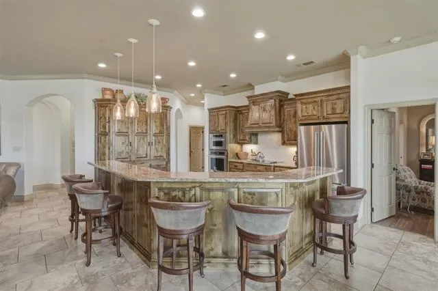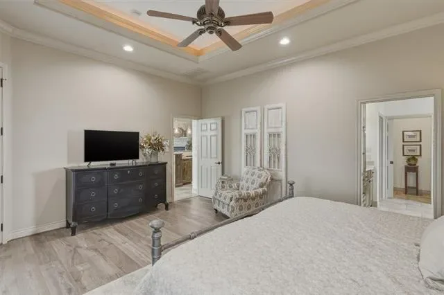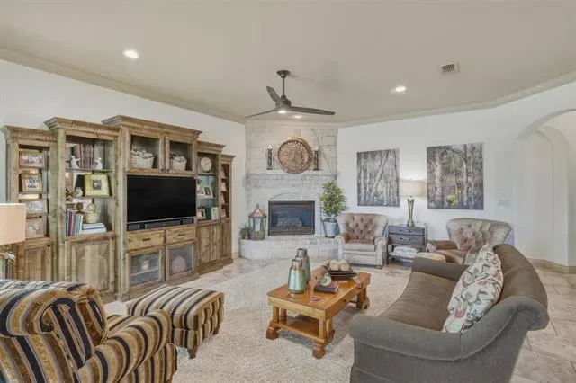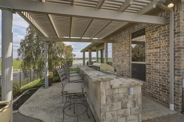 Located on the Harbor Lakes Golf Course behind a gated entrance, this beautiful home offers peaceful views of the golf course and a scenic pond that can be enjoyed from your private patio. Custom built by Ann Whitecotton, the home features an inviting open floor plan designed for comfortable living and entertaining. The large updated kitchen is the heart of the home and offers abundant custom wood cabinetry and generous workspace. The living room is warm and welcoming with a gas fireplace and plenty of natural light. A spacious office includes custom built-in cabinets, providing an ideal space for working from home or organizing daily life. The laundry room is thoughtfully designed with a sink and three storage closets, offering exceptional storage throughout. The home includes three full bathrooms, and the updated primary suite provides a relaxing retreat with a beautifully remodeled bathroom featuring a walk-in shower, soaking tub, and a spacious sitting area within the bedroom. Additional features include walk-up stairs to the attic, making storage easily accessible while adding to the home’s thoughtful design.