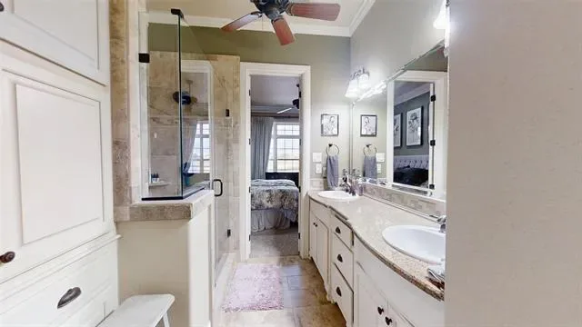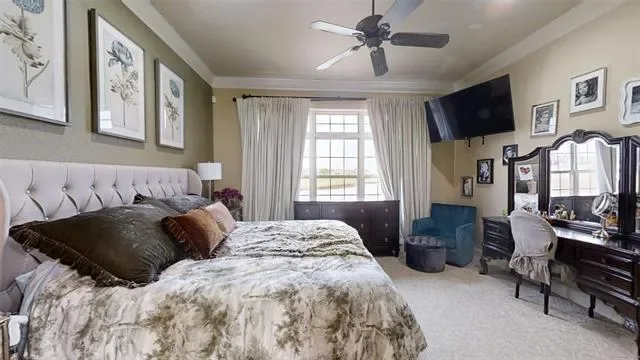 Experience luxury living in this beautifully appointed condo overlooking the Harbor Lakes golf course and serene pond. The open living area features a gas fireplace and flows into a well-equipped kitchen with a gas cooktop and elegant cabinetry that have a French Country aesthetic creating a welcoming vibe. The primary suite offers stunning golf course and water views, while each additional spacious bedroom includes its own ensuite bath and walk-in closet, providing comfort and privacy for all.