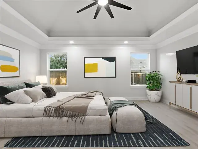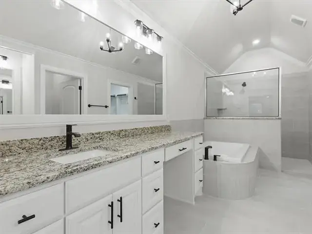 BUILDER INCENTIVE $5,000 CLOSING COSTS! Welcome to your dream home in Highland Park Bay, an exclusive 55+ community just a stone’s throw away from the waterfront! Step inside and be captivated by the gleaming wood-tile floors that add a touch of elegance to the living areas. The spacious open-concept living room boasts high-beam ceilings and a cozy stone fireplace. The adjoining kitchen and dining are a chef’s dream, complete with an oversized granite island, top-of-the-line stainless steel appliances, a custom vent hood, and a walk-in pantry. Retreat to the luxurious owners ensuite, featuring separate vanities, an expansive walk-in shower, separate soaking tub, and a generously sized walk-in closet with ample storage. The split floor plan offers privacy for the guest bedrooms that share a well appointed full bathroom. Additionally, a half bath is offered near the spacious laundry room which also provides storage space. Entertain your new neighbors on the covered patio with a fenced-in yard. This energy-efficient home is designed for those who want to save on utility bills without sacrificing comfort. You’re sure to love walks around the community with gorgeous views of the water.