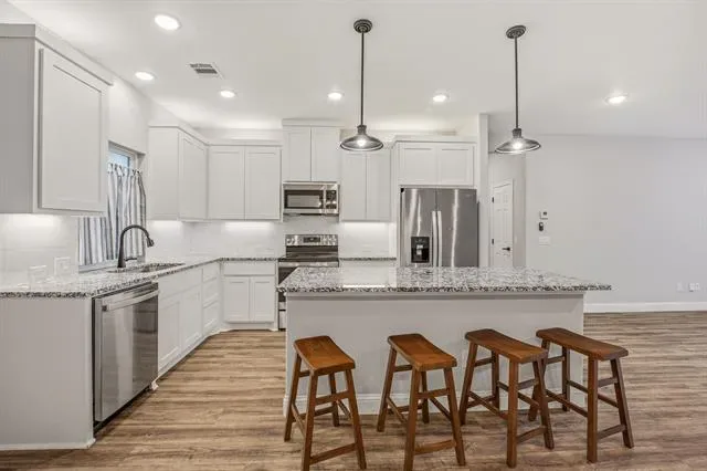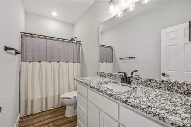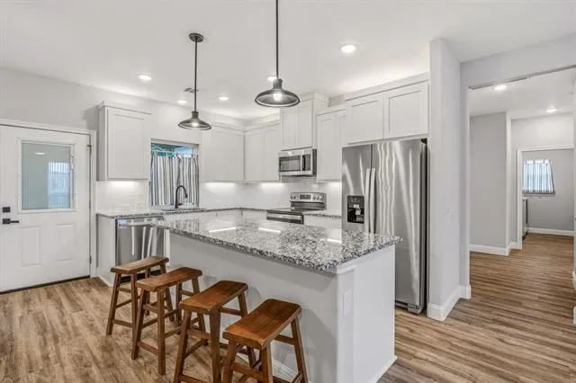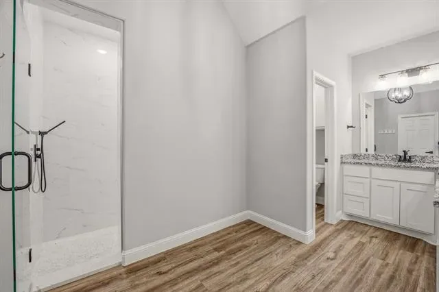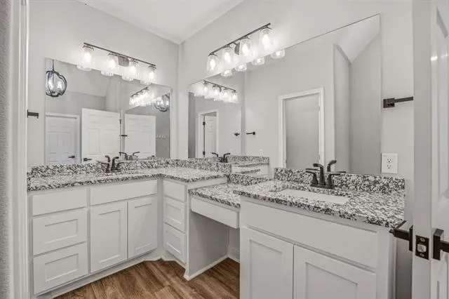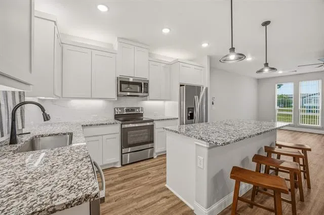 Inside, the kitchen features granite countertops and a functional layout that flows well for both everyday living and entertaining. The primary suite is well-appointed with dual vanities and a separate shower, offering both comfort and convenience.