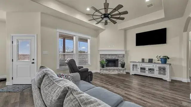 2024 CONSTRUCTION in a gated lake community! This 4-bedroom, 2-bath home offers a modern open-concept layout filled with natural light. The kitchen features custom-built cabinets, granite countertops, and a custom tile backsplash. Both bathrooms include custom tile work and custom vanities, with a double vanity in the primary suite. Additional highlights include a custom brick chimney, energy-efficient insulation, high-efficiency HVAC, and energy-saving water heater. Situated on a large lot with a huge shop and plenty of additional space. Enjoy modern design, quality craftsmanship, and lake community living — schedule your showing today!