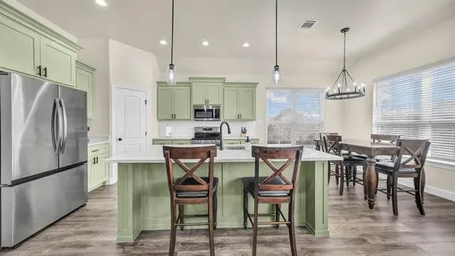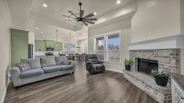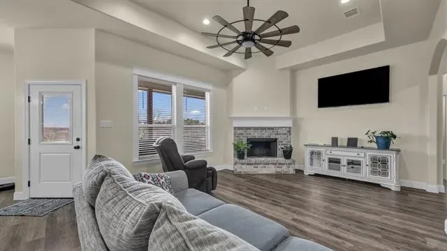 2024 CONSTRUCTION in a gated lake community! This 4-bedroom, 2-bath home offers a modern open-concept layout filled with natural light. The kitchen features custom-built cabinets, granite countertops, and a custom tile backsplash. Both bathrooms include custom tile work and custom vanities, with a double vanity in the primary suite. Additional highlights include a custom brick chimney, energy-efficient insulation, high-efficiency HVAC, and energy-saving water heater. Situated on a large lot with a huge shop and plenty of additional space. Enjoy modern design, quality craftsmanship, and lake community living — schedule your showing today!