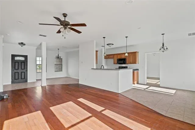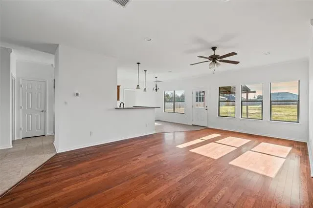 This well-maintained 2007 home, now offered at a reduced price, features four bedrooms thoughtfully set apart from the master suite. Situated at 1309 Chippewa Trail in the Granbury–Indian Harbor gated and secure subdivision, it offers two bathrooms and plenty of space for comfortable living. The living room’s wood flooring flows into the kitchen and dining area, with views of the .62-acre lot. From the covered patio, enjoy stunning sunsets while watching kids and pets play.