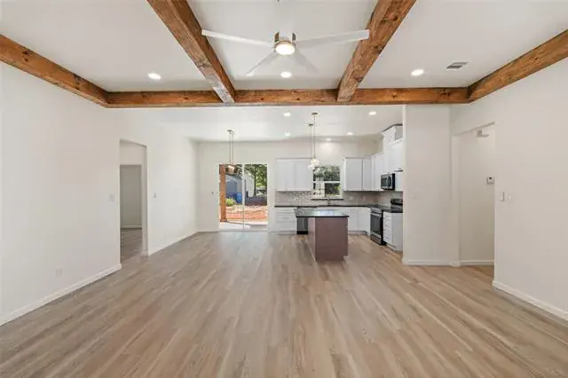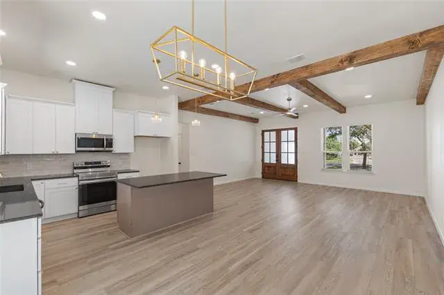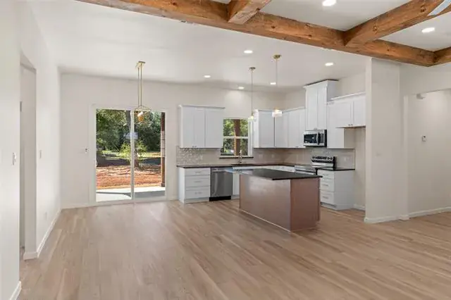 Step into modern elegance with this brand-new construction home, offering a perfect blend of style, comfort, and functionality. Featuring 3 spacious bedrooms, 2 beautifully appointed bathrooms, and a 2-car garage, this home is designed with thoughtful details throughout. The elegant double entry doors create a grand first impression, welcoming you into a home that feels both inviting and upscale. The heart of the home is the open-concept living area, where decorative ceiling beams add architectural charm and warmth. Golden light fixtures offer a modern touch, while sleek black countertops provide striking contrast in the kitchen. Whether you''re entertaining or enjoying a quiet evening, the layout offers the ideal balance of openness and privacy. The primary suite is a true retreat, complete with an ensuite bathroom that includes separate vanities, a standalone soaking tub, and a luxurious walk-in shower. A barn door opens to a spacious walk-in closet, offering both charm and ample storage.