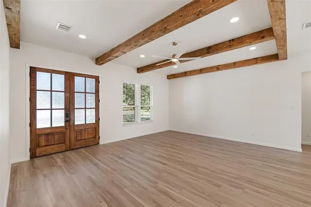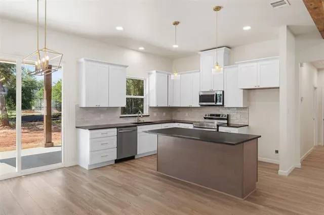 Step into modern elegance with this brand-new construction home, offering a perfect blend of style, comfort, and functionality. Featuring 3 spacious bedrooms, 2 beautifully appointed bathrooms, and a 2-car garage, this home is designed with thoughtful details throughout. The elegant double entry doors create a grand first impression, welcoming you into a home that feels both inviting and upscale. The heart of the home is the open-concept living area, where decorative ceiling beams add architectural charm and warmth. Golden light fixtures offer a modern touch, while sleek black countertops provide striking contrast in the kitchen. Whether you''re entertaining or enjoying a quiet evening, the layout offers the ideal balance of openness and privacy. The primary suite is a true retreat, complete with an ensuite bathroom that includes separate vanities, a standalone soaking tub, and a luxurious walk-in shower. A barn door opens to a spacious walk-in closet, offering both charm and ample storage.
