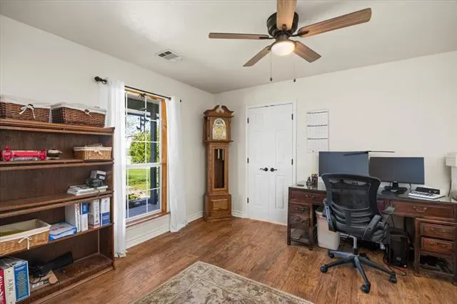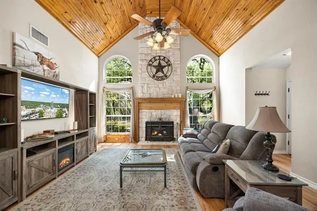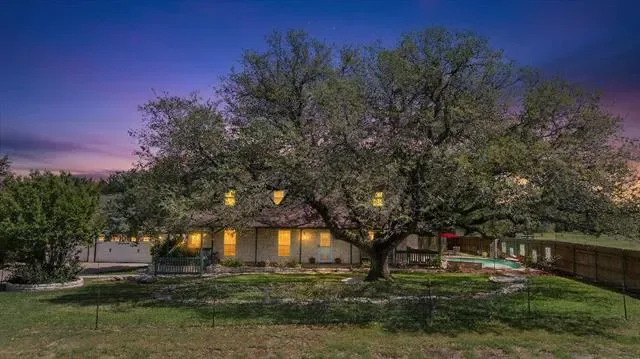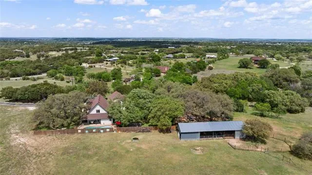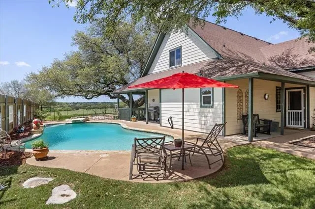 Welcome to your own private Texas retreat just outside Granbury city limits! Enter through a gated entrance and wind your way across 26+ breathtaking acres to this charming Austin stone and wood home, offering 2,598 square feet of warm, rustic elegance. Inside, you’ll find 3 bedrooms and 2.5 baths, highlighted by a stunning floor-to-ceiling stone, wood-burning fireplace that anchors the spacious living area. The kitchen features granite countertops, a breakfast bar, and plenty of room for gathering. The private primary suite provides a relaxing escape with an ensuite bath, soaking tub, and separate shower. Upstairs, two additional bedrooms, a full bath, and a second living area create the perfect setup for family or guests. Step outside and experience everything this exceptional property has to offer. Enjoy a sparkling gunite pool with a tranquil water feature, a wraparound porch shaded by majestic live oaks, a peaceful koi pond, a stock tank, and a chicken coop for a true country lifestyle. Equestrian and agricultural enthusiasts will appreciate the 30×45 barn (approximately 1,960 sq ft), complete with up to four stalls and a tack room, along with fenced pasture and an active AG exemption on 24 acres of open land. Additional features include an oversized detached three-car garage, carport, a partial-yard sprinkler system, private well, and aerobic septic system. Unwind on the front porch as you take in unforgettable Texas sunsets—this is country living at its finest. Schedule your private tour today before this rare opportunity slips away!