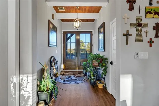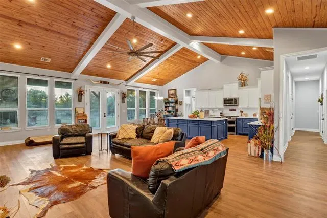It doesn’t get more beautiful than this. Five bedrooms, three bathrooms, and a Modern Farmhouse vibe sitting on peaceful private acreage. From the moment you walk in, the 20-plus-foot ceilings hit you, open, bright, and just breathtaking. The kitchen is truly the heart of the home here… quartz counters, GE Café appliances, a huge walk-in pantry, t’s a setup that makes cooking and hosting actually fun. The oak-tone luxury vinyl plank floors run throughout and give the whole space that warm, elevated feel without being high-maintenance. The property is on a water oxidation and purification system, so the whole home is served with clean, high-quality water straight to every tap. This place was built smart, too. Full spray-foam insulation for comfort and efficiency. Outside you’ve got massive front and back porches perfect for morning coffee, game day barbecues, or long slow evenings, it all fits. And the oversized 3-car garage gives you room for vehicles, storage, and toys. The surrounding acreage gives you privacy without isolation, you’re only minutes from town, but it feels like you’re miles away. If you’ve been waiting on a place that you won’t have to compromise on, this is it.