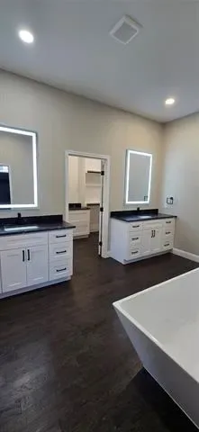 The spacious primary suite is a true retreat with a stunning ensuite bath featuring a large walk-in shower with three shower heads, gorgeous stone finishes, double vanities with anti-fog smart mirrors, and a huge walk-in closet.