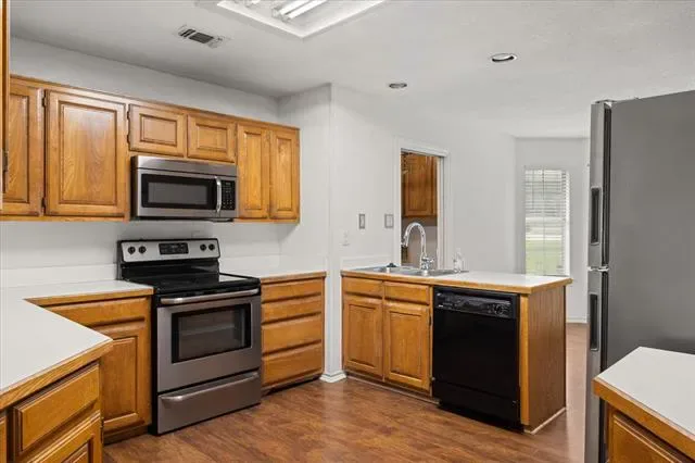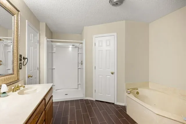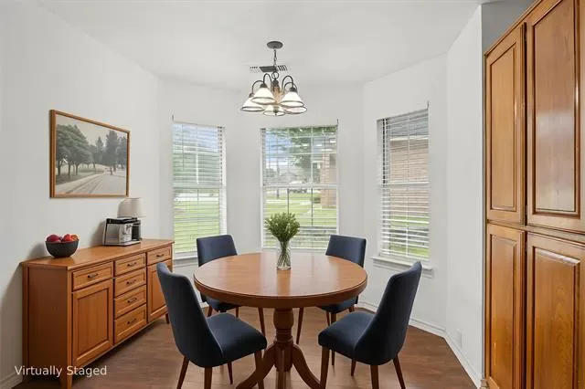 Welcome to 3905 Frisco Circle in Granbury, Texas—a wonderful home offering comfort, style, and serenity. This charming home features 3 spacious bedrooms, 2 full bathrooms, and lots of living space. The open layout includes a vaulted ceiling in the living room, a cozy fireplace, and a formal dining area ideal for entertaining. The kitchen is well-equipped with ample cabinetry, a breakfast nook, and durable flooring through ought. The oversized primary suite boasts a sitting area, dual closets, a jetted tub, separate shower, and double vanities. Step outside to the large screened-in patio and enjoy views of Comanche Peak and the expansive backyard on a flat, fenced lot with no HOA. Conveniently located near Hwy 144, this home offers a rare blend of tranquility and accessibility, schedule your showing today!