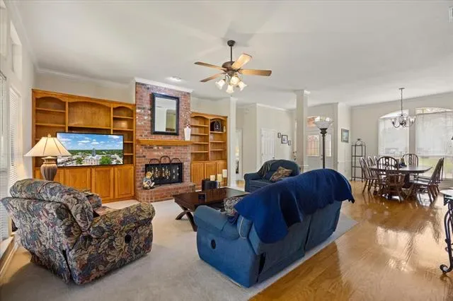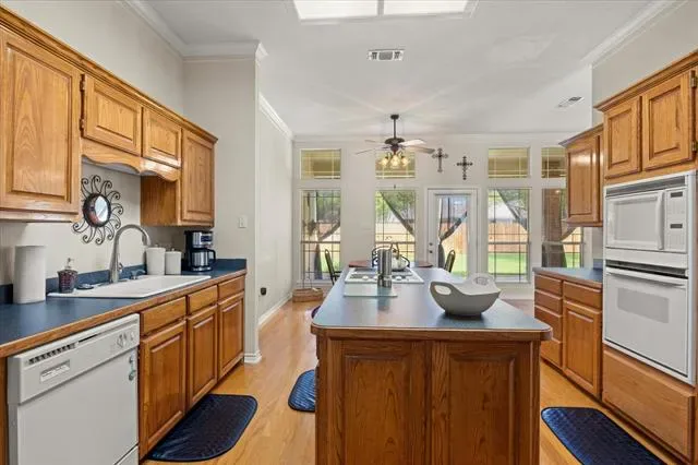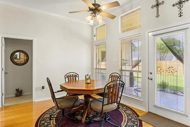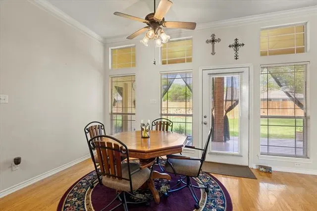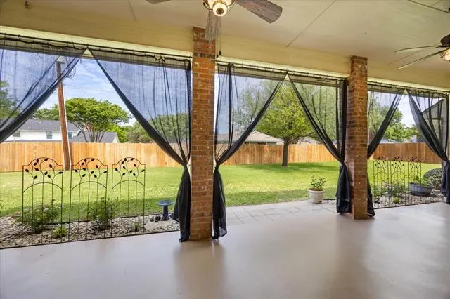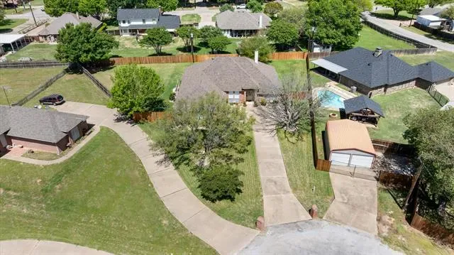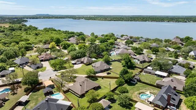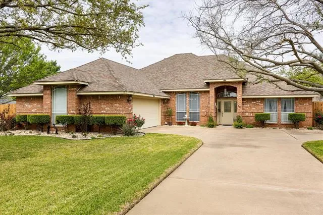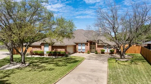 This Must See home is beautiful inside and out. Perfectly located at the end of a cul-de-sac in Laguna Vista which is off 51 for convenient driving to Granbury or Weatherford. This home feels so comfortable boasting hardwood floors, built-ins in the oversized living area and open floor plan. No family is too large for all the chefs in this kitchen with its large Island and walk in pantry. 3 bedrooms and 2 bath with lots of storage. The large primary bedroom has a door to the backyard and in suite bath. Garage has built in cabinets and workspace area, with a door to the backyard. Large back patio that has screen curtains and a misting system, also has hook ups for a hot tub already installed. Perfect for entertaining or just relaxing. You just have to see this home to appreciate it.