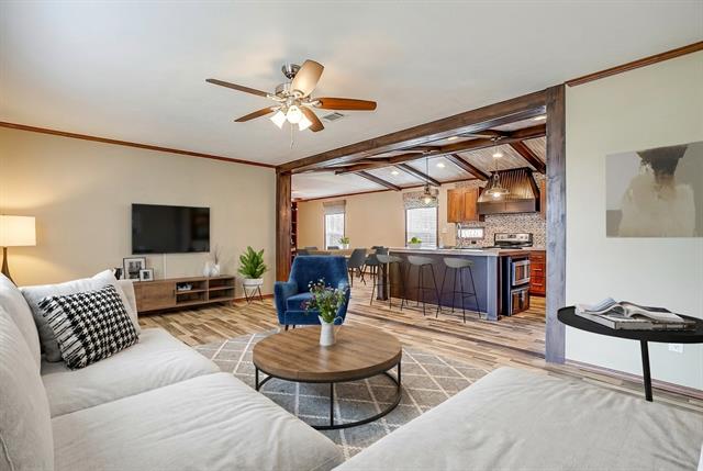 The home has a comfortable 4-bed, 2-bath layout with two living areas, a split-bedroom design, and a laundry room big enough for an extra fridge or freezer.
