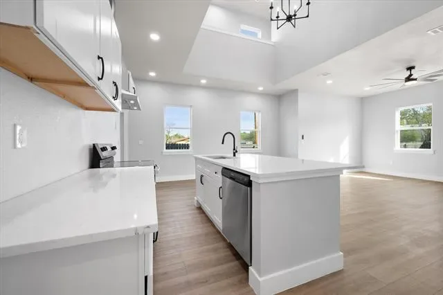 Your next chapter starts in Granbury — and this two-story home in established Lakeside Hills is ready to make it easy. Step inside to soaring ceilings and an open-concept layout that immediately feels bigger than the square footage suggests. Natural light moves freely from the kitchen through the living area, making this the kind of space that works just as well for a quiet Tuesday night as it does for a weekend full of people. The kitchen anchors it all with granite countertops, stainless steel appliances, recessed lighting, and a layout designed to keep the cook in the conversation.